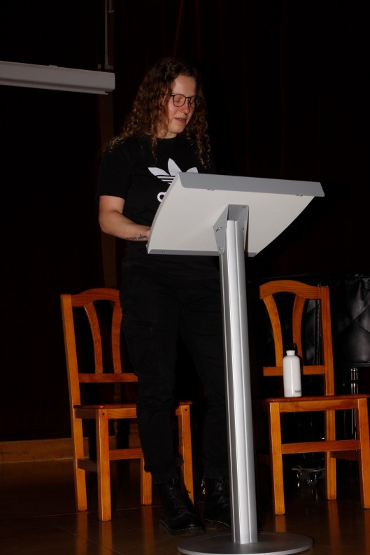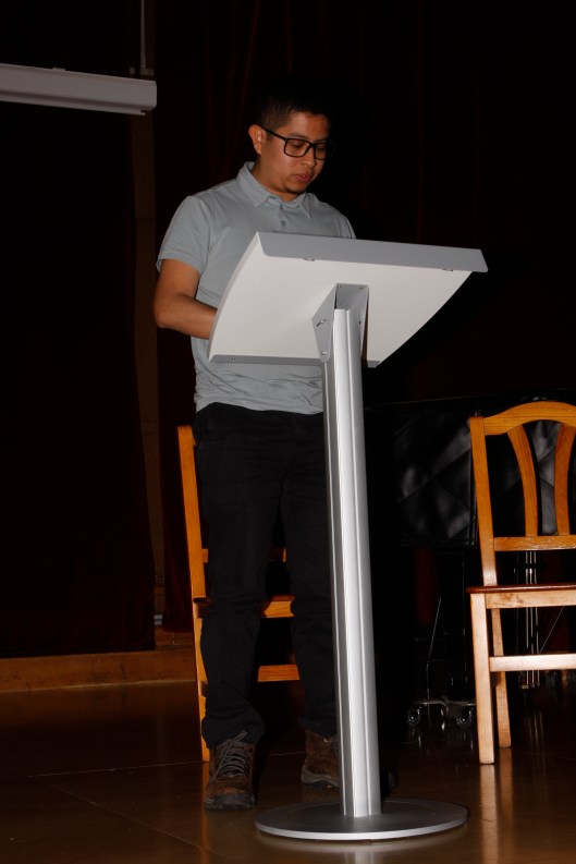 Desde el momento que tomé asiento frente al escenario y, con un ejemplar prestado del Hobbit gracias a la cortesía de Túrin Adanedhel, sentí una mezcla de nervios y emoción palpables. El fragmento que escogí se parece mucho a una anécdota que tuve que vivir el 2024, en la cual tuve que decidir rápidamente el emprender mi propio viaje de aventuras. Por ello, al leerlo sentí cómo formaba parte del mundo imaginado por Tolkien. Fue muy gratificante saber luego de mi narración que los asistentes, algunos ya muy familiarizados con su obra y otros nuevos en la comunidad, llegaron a disfrutarla, a pesar de todos los nervios que cargaba conmigo.