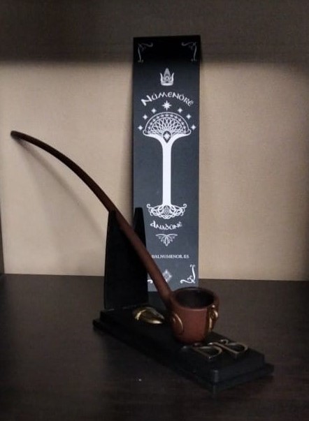 Y como les deseamos un feliz viaje y un próspero regreso, los tres fueron obsequiados con una de las tradiciones más bonitas del smial: la entrega de una rama de Oiolairë, como se daba a los marineros númenoreanos, en una placa de madera con el emblema del smial de Númenor.