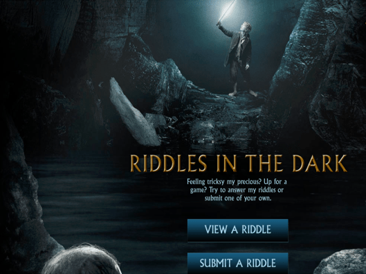 Se trata de un juego interactivo basado en el capítulo «Acertijos en la oscuridad». En el podremos sentirnos como Bilbo y responder a las adivinanzas que Gollum nos propone, muchas de ellas pertenecientes a la novela.